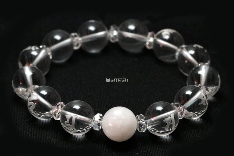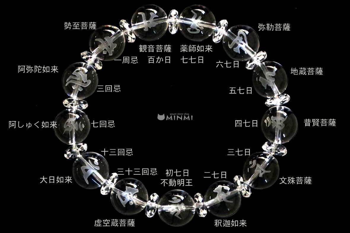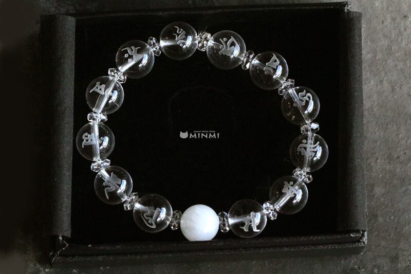 こちらのブレスは、高品質の12㎜水晶に13体の仏様を彫刻したブレスになります。
