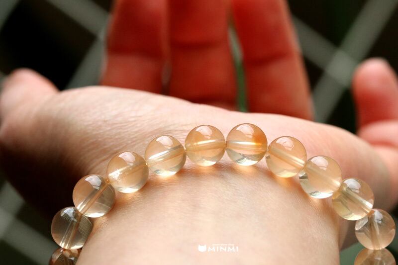 こちらの赤水晶ブレスは、ややイエロー味が強くでているオレンジイエローカラーになります。