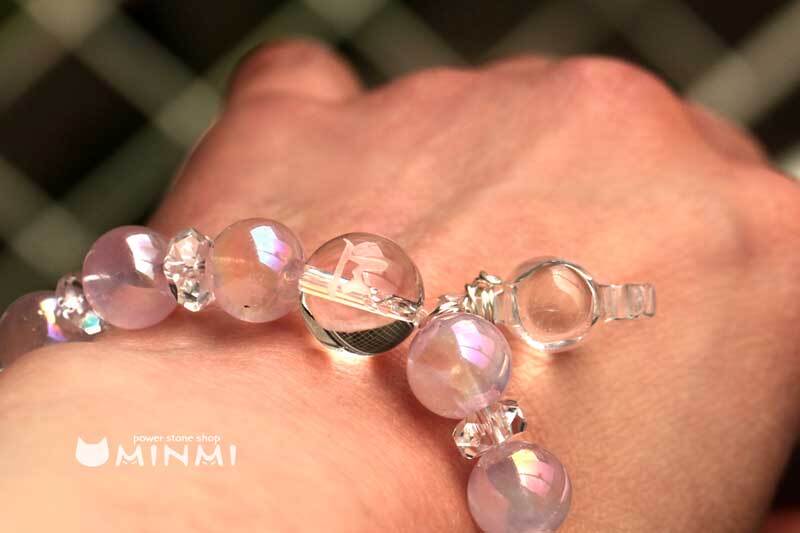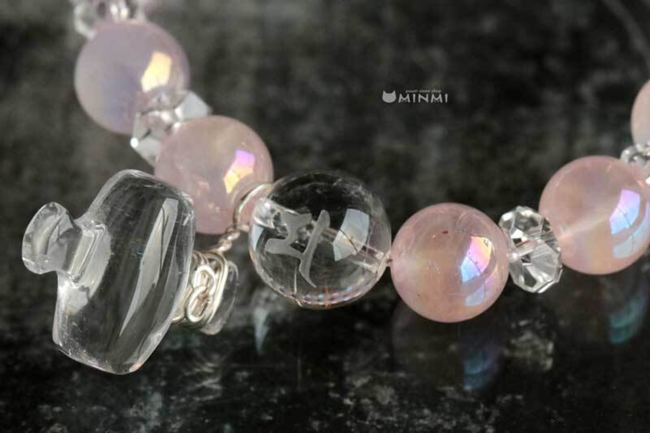 こちらのブレスは、「良縁・恋愛成就・アンチエイジング・若さと美しさ・出会い」などの意味を込めて作りました。